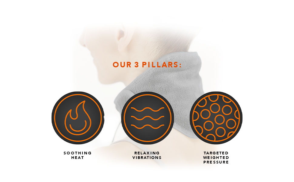 WEIGHTED & MASSAGING HEATING PAD Calming Heat’s weighted design provides targeted heat therapy to your joints and muscles, helping to ease aches and pains. Long gone are the days of constantly readjusting your heating pad – the unique weighted feature helps Calming Heat stay in place, exactly where you need relief!