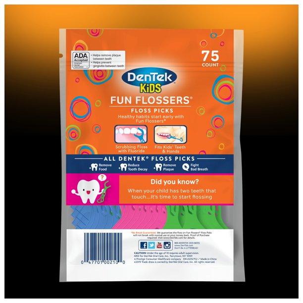 - Healthy oral care habits and routines start early with DenTek Kids Fun Flossers