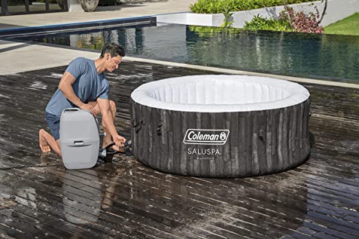 Inflatable Coleman 90455 SaluSpa Bahamas 71-Inch x 26-Inch 4 Person Outdoor Portable Hot Tub Spa with 120 Air Jets, Pump, 2 Filter Cartridges, and Tub Cover