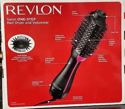 Revlon Hot Air One-Step Hair Dryer Volumizer Brush Styler Black Pink 4.25″Barrel